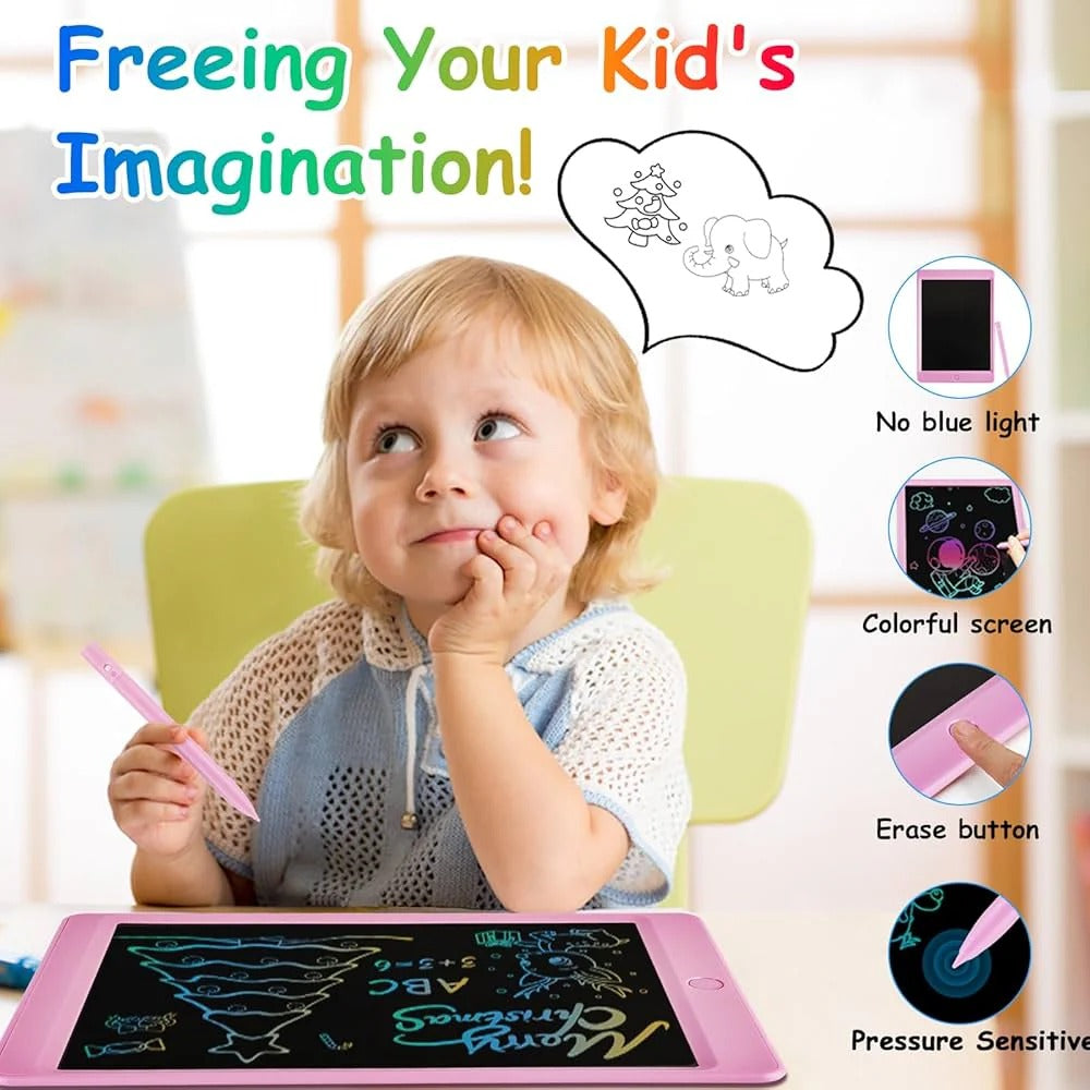 - EYE-PROTECTING COLOR SCREEN: We firmly believe that can make thousands of children write "I ♥ Mom" on the drawing board, then we will succeed. The colorful drawing pad uses the Newest LCD pressure-sensitive technology and has a large 8.5-inch LCD color screen for viewing. The LCD screen of the writing board has no radiation, no glare, is safe and comfortable, and can be used by children, releasing kids' imagination.